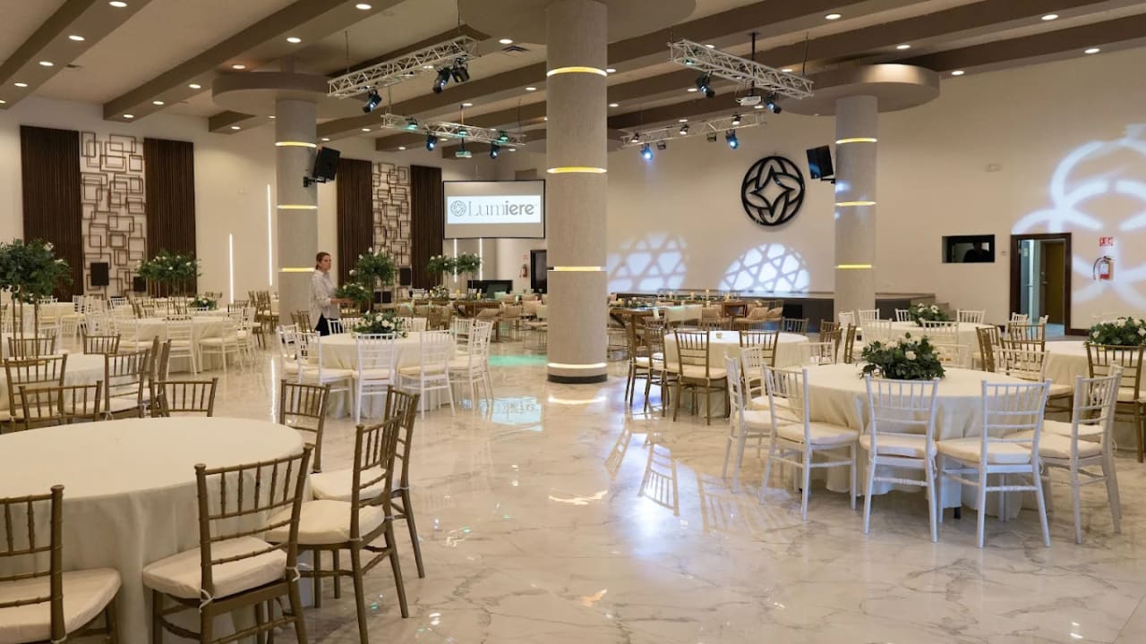 Lumiere Salón es un espacio elegante y sofisticado, ideal para la celebración de eventos sociales inolvidables. Cuenta con todo lo necesario para crear una velada especial, ofreciendo un ambiente distinguido perfecto para bodas, XV años y celebraciones únicas.