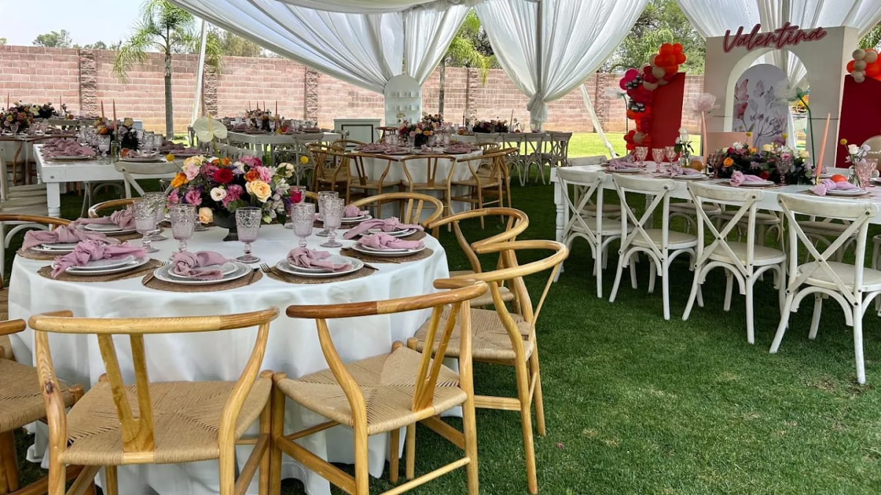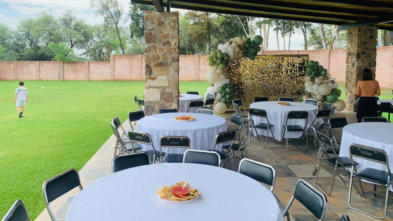 Jardín de eventos con terraza, ideal para celebraciones sociales que buscan un entorno al aire libre elegante y versátil. Perfecto para eventos personalizados, memorables y bien organizados.