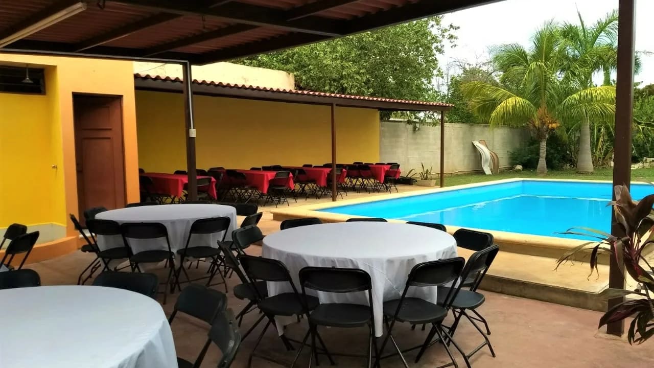 Espacio en renta con piscina, ideal para eventos pequeños como fiestas infantiles, reuniones familiares y celebraciones sociales. Ofrece 8 horas de uso y capacidad para hasta 50 personas, brindando un ambiente privado, cómodo y funcional.