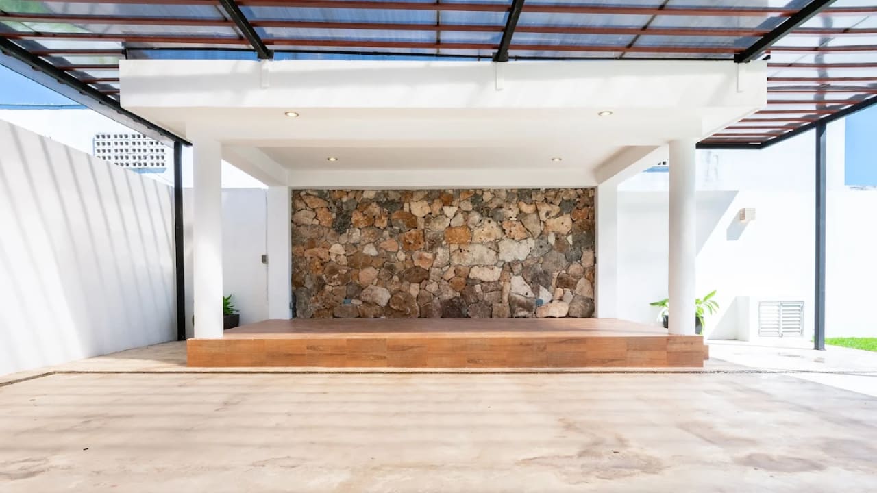 Salón climatizado ideal para fiestas familiares, bodas, XV años, bautizos, primeras comuniones y aniversarios. Cuenta con capacidad para 130 personas, escenario y pista de baile techados, cocina equipada y servicio de banquetes para una celebración completa.